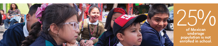 Young people under the age of 18 in Mexico represent 30.4% of the population, totaling about 38.2 million people. However, mainly due to unfavorable socioeconomic conditions, only 29 million1 are registered as elementary, junior high, high school, and teacher education school students.