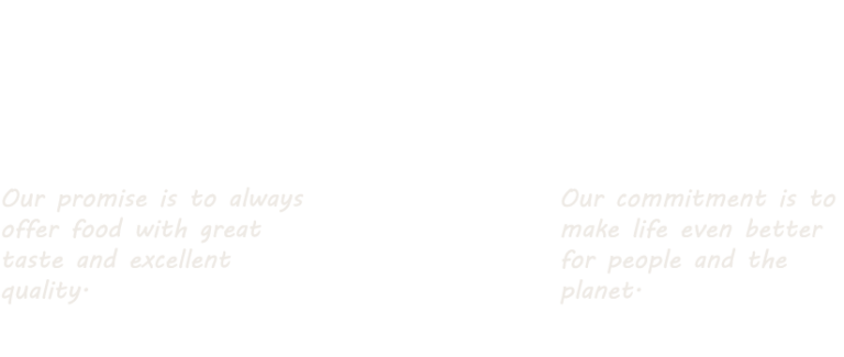 Delicious food is what we create. A better life is our driver. And success means finding the right balance between the key elements of what we make and how we make it: flavor, connection, nutrition, and sustainability.